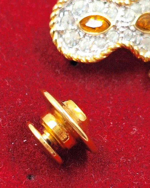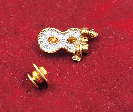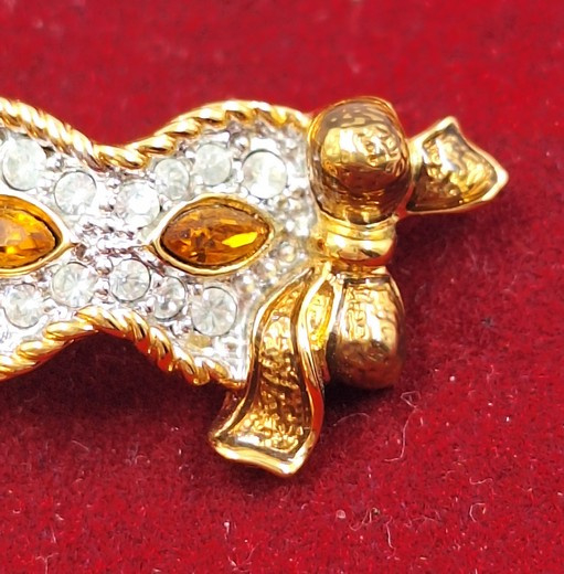 Kleine Swarovski maskerade speld of 'pin' in goude tinten en sprankelende kristallen.