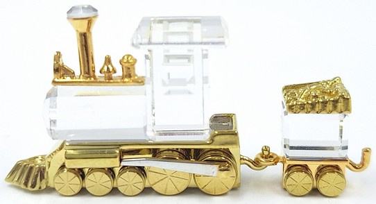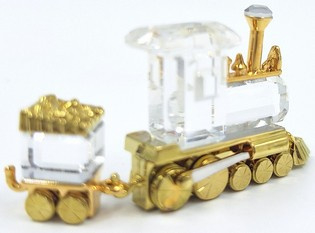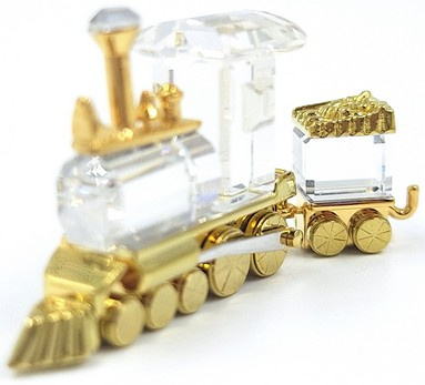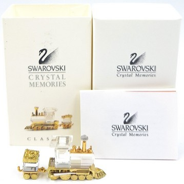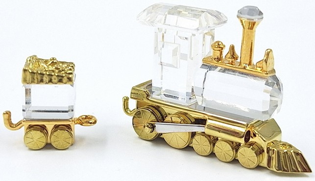 Artikelnummer: 261053Speelgoedtrein bestaande uit een locomotief en wagon van Swarovski, uit de serie 'Memories'. Het beeldje is gemaakt van helder kristal met gouden accenten. Inclusief origineel doosje, omdoosje en certificaat.