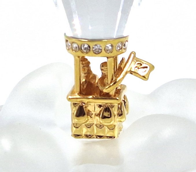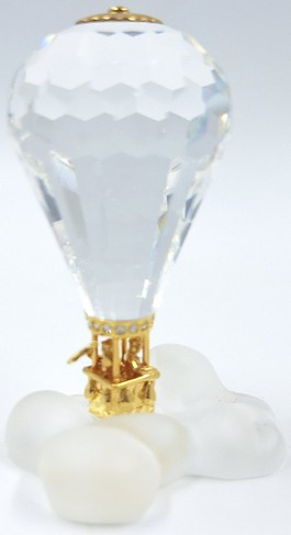 Artikelnummer: 261054Heteluchtballon van Swarovski, uit de serie 'Journeys', waarbij de wolken zijn uitgevoerd in gematteerd kristal. Het beeldje heeft hele mooie details: in het mandje zitten 2 figuurtjes, waarbij 1 een vlag vasthoudt met daarop het Swarovski logo.