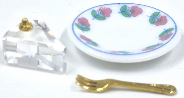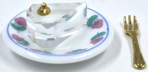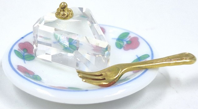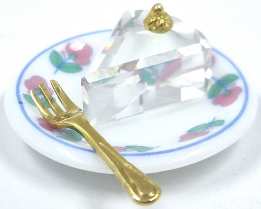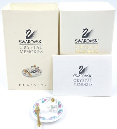 Artikelnummer: 261055Taarpunt op bordje en gouden vorkje van Swarovski, uit de serie 'Memories'. Inclusief origineel doosje, omdoosje en certificaat.