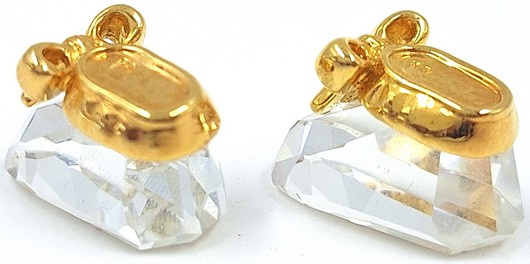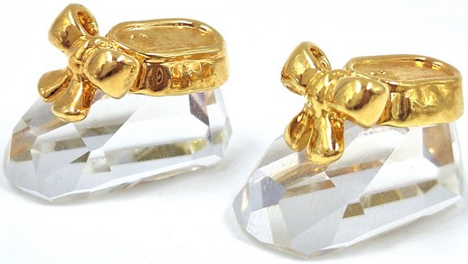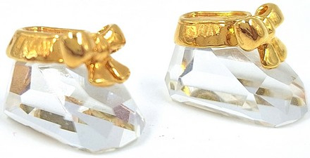 Artikelnummer: 261064Babyschoentjes van Swarovski, uit de serie 'Memories'. Het beeldje is gemaakt van helder kristal met gouden versiering. Inclusief origineel doosje, omdoosje en certificaat.