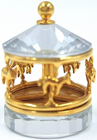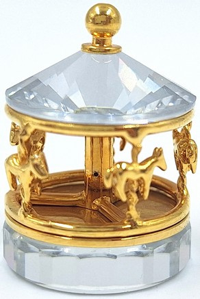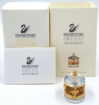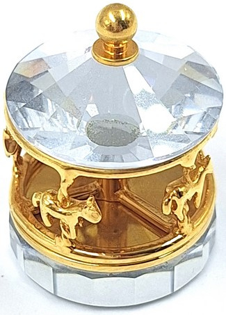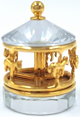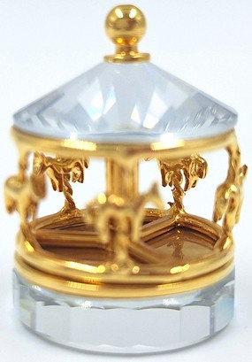 Artikelnummer: 261065Carrousel of draaimolen van Swarovski, uit de serie 'Memories'. Het beeldje is gemaakt van helder kristal met gouden accenten. Inclusief origineel doosje, omdoosje en certificaat.